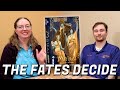 The Moirai (often called The Three Fates in English) are goddesses from Greek mythology. They have set their spinning wheel in motion to weave the destiny of humankind. Clotho spins together the thread of life, Lachesis uses her rod to measure the lengths of that thread, and Atropos is in charge of deciding when to cut a soul’s thread.